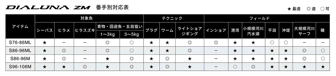SHIMANO Dialuna ZM S76-86ML